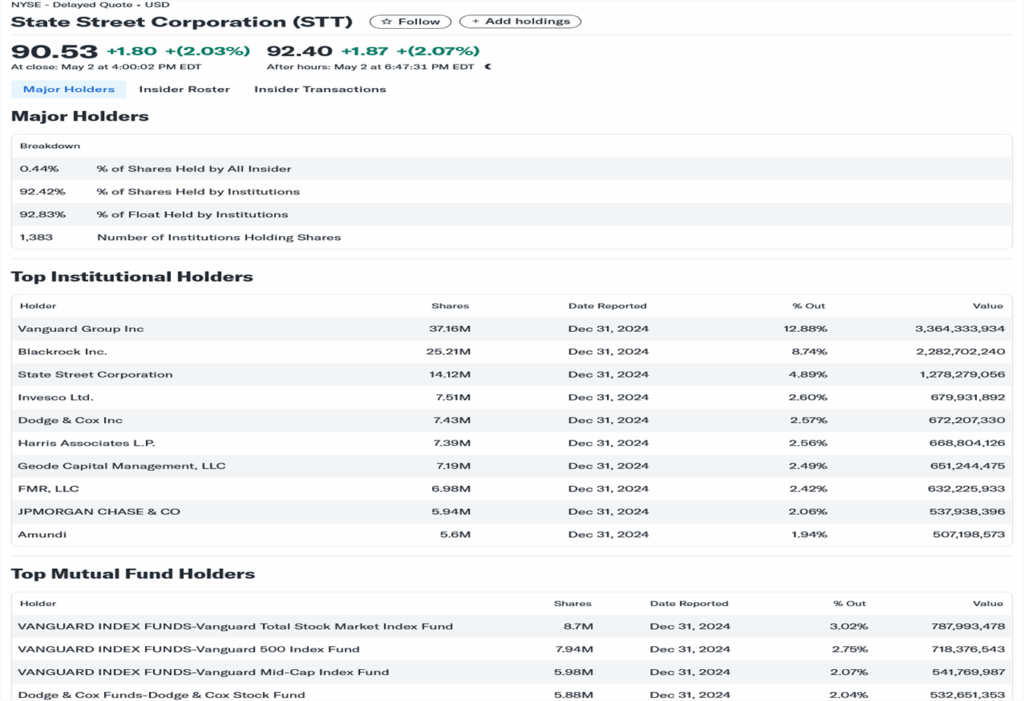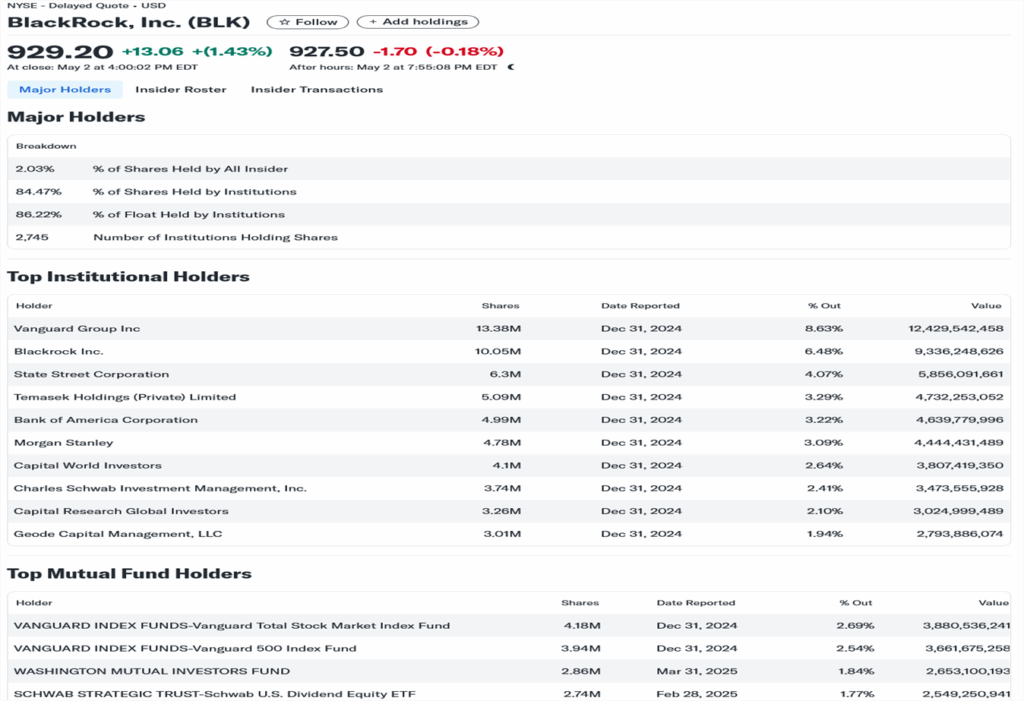 (Πηγές: https://finance.yahoo.com/quote/BLK/holders/ & https://finance.yahoo.com/quote/SCHW/holders/ & https://finance.yahoo.com/quote/STT/holders/ & https://finance.yahoo.com/quote/JPM/holders/ & https://finance.yahoo.com/quote/BAC/holders/)